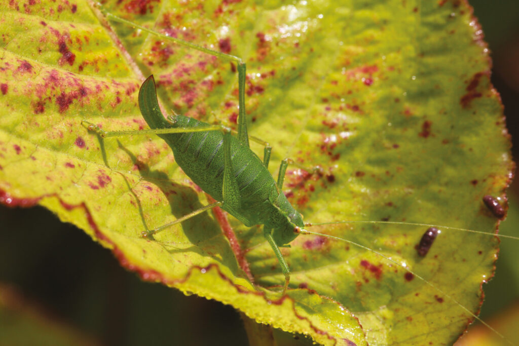 Decticelle grisâtre Platycleis albopunctata (Tettigoniidé) sur genêt mort, Forêt de Fontainebleau (Seine-et-Marne), septembre 2021 — Cliché : Michel NardJuvénile de Grande Sauterelle verte Tettigonia viridissima (Tettigoniidé), Melesse (Ille-et-Vilaine), mars 2022 – Cliché Barbara MaiPhanéoptère commun Phaneroptera falcata (Tettigoniidé), Mont Saint-Cyr, Cahors (Combe d’Isabot), août 2024 – Cliché Francis TarrieuFemelle de Leptophye ponctuée Leptophyes punctatissima (Tettigoniidé), Edern (Finistère), août 2017 – Cliché Marc CanevetMâle de Sauterelle à carapace Cyrtaspis scutata (Tettigoniidé), Couiza (Aude), janvier 2023 – Cliché Loïc BrepsonFemelle de Decticelle des bruyères Metrioptera brachyptera (Tettigoniidé), Tuchenn-Gador, Botmeur (Finistère), septembre 2013 – Cliché André FouquetMéconème fragile, Meconema meridionale, parc des Beaumonts, Montreuil (Seine-Saint-Denis), août 2024 – Cliché Marie-André LantzSauterelle verte femelle Tettigonia viridissima (Tettigoniidé), Herblay-sur-Seine (Val-d’Oise), octobre 2022 – Cliché Joël TribhoutJeune Tettigoniidé, Tallud (Deux-Sèvres), juillet 2023 — Cliché Jade PétraultTettigoniidé juvénile, Drôme, juin 2008 – Cliché Pierre FalaticoPhanéroptère liliacé Tylopsis lilifolia (Tettigoniidé), Rhuis (Oise), juillet 2018 – Cliché Michel HuyvaertRare forme jaune de la Grande Sauterelle verte Tettigonia viridissima (Tettigoniidé), sur les bords de la Sèvre nantaise, à Vertou (Loire-Atlantique), juillet 2008 – Cliché André FouquetPhaneroptère commun Phaneroptera falcata (Tettigoniidé), bordure de la forêt d’Halatte, Verneuil-en-Halatte (Oise), juillet 2018 — Cliché Nelly FeinteJeune Tettigoniidé, Saint-Paul-la-Coste (Gard), mai 2019 – Cliché Marie-Claude LowenthalFemelle de Phanéroptère méridional Phaneroptera nana (Tettigoniidé), Doussard (Haute-Savoie), octobre 2018 – Cliché Monique MagnoulouxJeune Tettigoniidé, Bréviandes (Aube), juin 2021 – Cliché Alain VilletorteBarbitiste languedocien Barbitistes fischeri mâle (Tettigoniidé), Mandelieu la Napoule (Alpes-Maritimes), mai 2009 – Cliché Claudie DesjacquotMagicienne dentelée Saga pedo (Tettigoniidé), Ardèche, août 1993 — Cliché : Gérard Blondeau