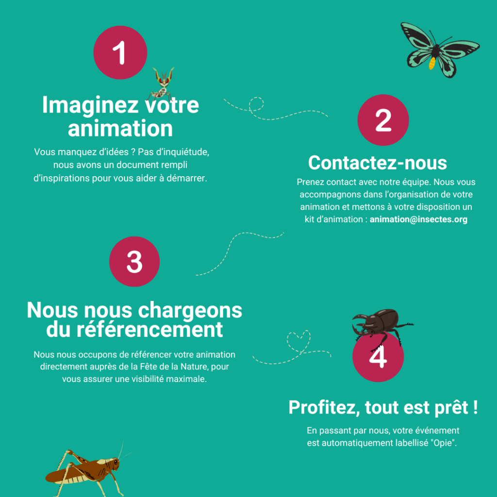 La Fête de la Nature aura lieu cette année du 20 au 25 mai. L’Opie est là pour vous accompagner à chaque étape ! Vous souhaitez organiser une animation autour des insectes, mais vous ne savez pas par où commencer ? Pas de panique, on est là pour vous guider !