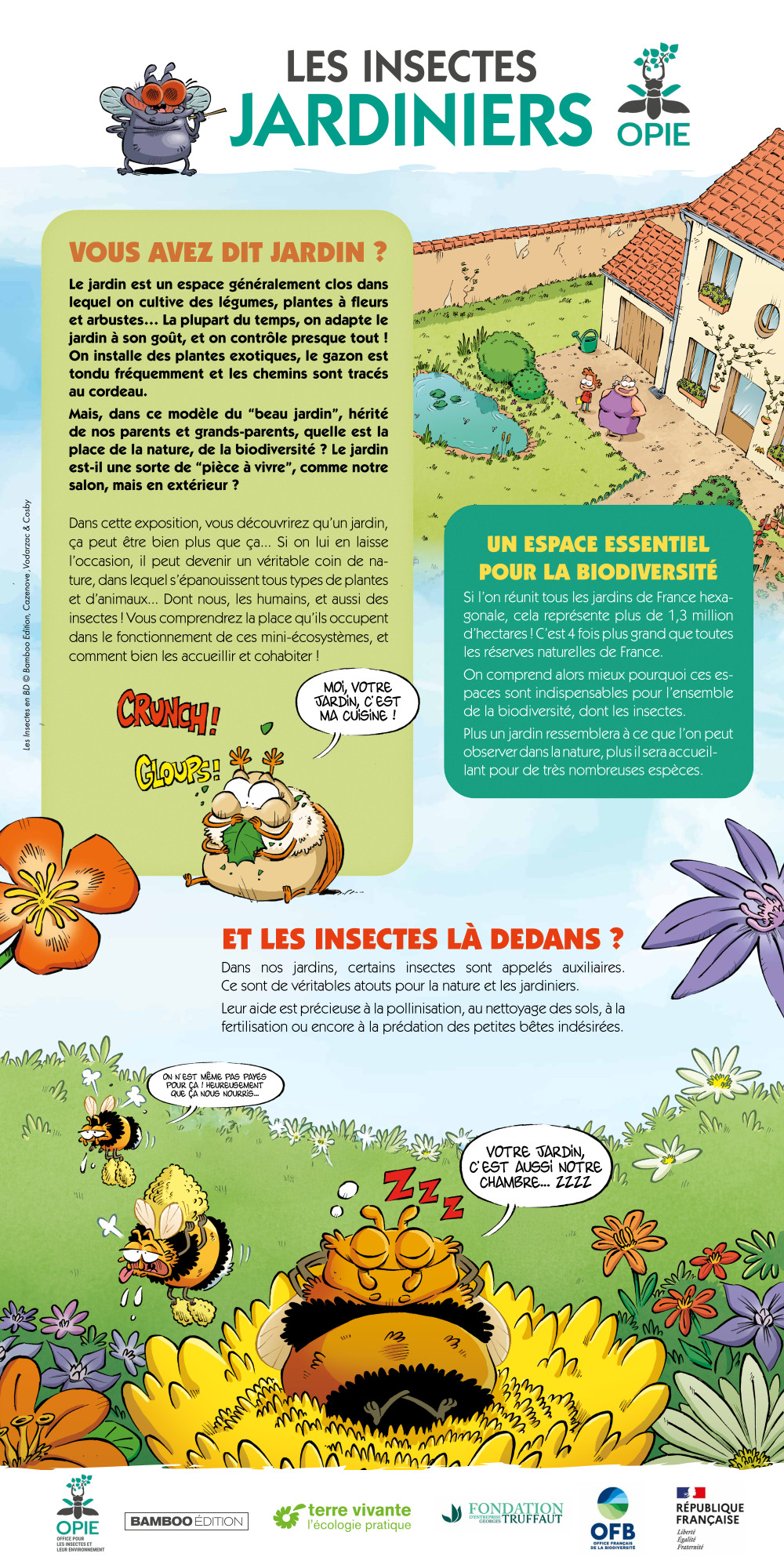 Cette exposition invite à changer notre regard sur le jardin et à découvrir le rôle essentiel des insectes auxiliaires : coccinelles, chrysopes, abeilles, bourdons, coléoptères ou encore vers blancs.